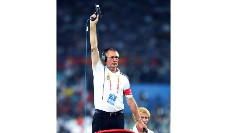 You may not have heard of Alan Bell, but you’ve almost certainly heard his gun. Now in his 70s, he remains the highest-ranked chief starter in the UK and one of the most experienced in the world. As well as the World Championships he has fired the starting pistol at the Olympics, the Commonwealth Games, the World Indoor Championships, and the European Championships. It makes him the only international starter to have officiated at every major athletics meeting. And it means that when Usain Bolt cemented his greatness in Berlin, Alan had the best seat in the house.