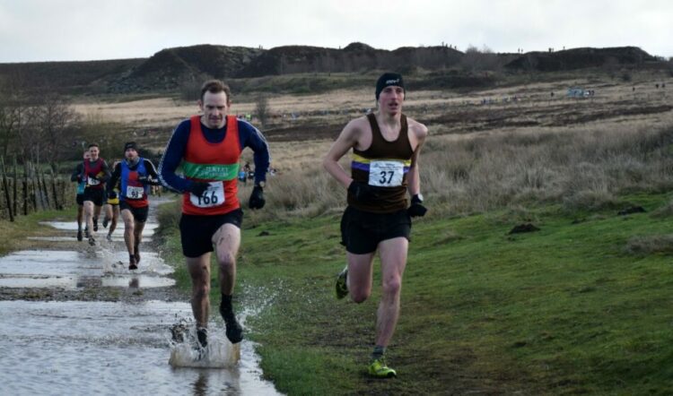 First four men in the Stanbury Splash (Dave Woodhead)